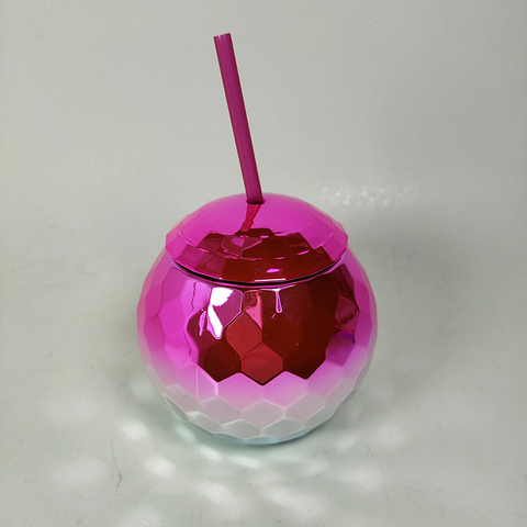 Silver Spherical Cocktail Cup with Lid and Straw Sparkly Glitter for Ball Tea Drinking Bottle for Parties and Drinkware