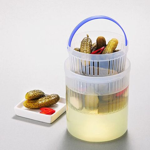 Transparent Plastic Pickle Jar with Strainer Insert Flip Top Storage Container for Kitchen Use